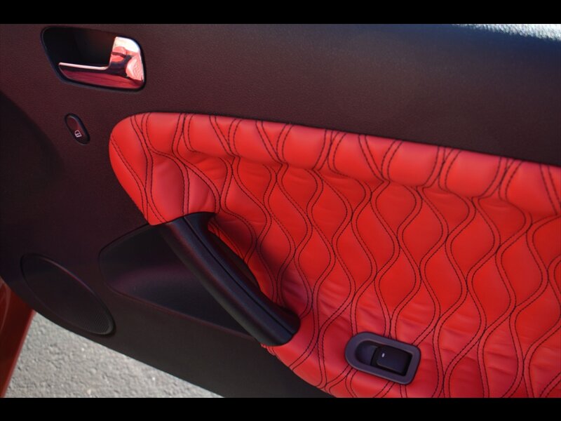 Ventus V12 high-performance tires. Apex Leather of North Carolina and Cowboys Interior Specialists of Phoenix worked together to donate and install a stunning red leather interior with custom stitching.