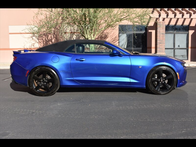 We just got this sharp and well-cared-for 2017 Camaro 2SS in from a very trusted national lender. It was well taken care of. This convertible has a great low 66,978 miles that is only an average of 7,568 miles driven per year!! The very sharp and upgraded hyper blue metallic exterior looks really good and is in great condition for its year and miles. The equally nice premium leather interior is equally clean and has been well-maintained; it also has never been smoked in. This Camaro is a very well equipped 2SS with all the options listed above, plus a long list of factory upgrades that make it a great sports cars inside and out, this Chevrolet looks and drives great — the color combination is eye-catching, and the overall condition reflects how well it’s been cared for. It looks great! In addition it has just been fully serviced by our Chevy specialist, including a comprehensive multi-point pre-owned vehicle inspection, and everything checked out in excellent condition. Since this is a Carfax-certified vehicle with an exceptional service history and a completed pre-owned inspection, it qualifies for several certified pre-owned (CPO) extended warranty options at reduced rates. Our family environment and great pricing not only make Goldie’s Motors one of the most comfortable places to buy a car, but it also makes us one of the FASTEST. You can drive out of our dealership in less than an hour after selecting your future car! WE ARE OPEN 6 DAYS A WEEK. Please visit us Monday-Friday, 8:30 am-6 pm, and Saturday, 8:30 am-4 pm, or call to schedule an appointment at our all-new Sales and Service center in Mesa, Arizona. We strive to offer a better customer experience, so please check out our website at www.goldiesmotors.com and our thousands of reviews on Google.com, Cars.com, BBB of Arizona, and others! For a free copy of the CARFAX, don't hesitate to get in touch with us by phone or email at sales@goldiesmotors.com *At Goldie’s Motors, we do our best to verify all the options on our vehicles, but due to the auto-population on the part of our advertisement, we cannot guarantee all the options are correct.