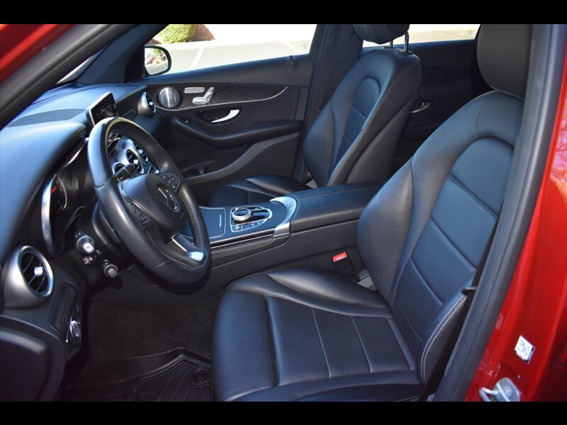 We just acquired this stunning designo Red Metallic 2018 Mercedes-Benz GLC 300 4MATIC—it was just traded in from a great customer and is in spectacular condition! This is a 1-owner vehicle with an excellent history and only 34,538 miles. That is only an average of 4,317 miles driven per year!! The Carfax report is excellent, and the vehicle has been strictly inspected by our specialists. This GLC balances refined Mercedes luxury with high-level safety tech and agile performance.